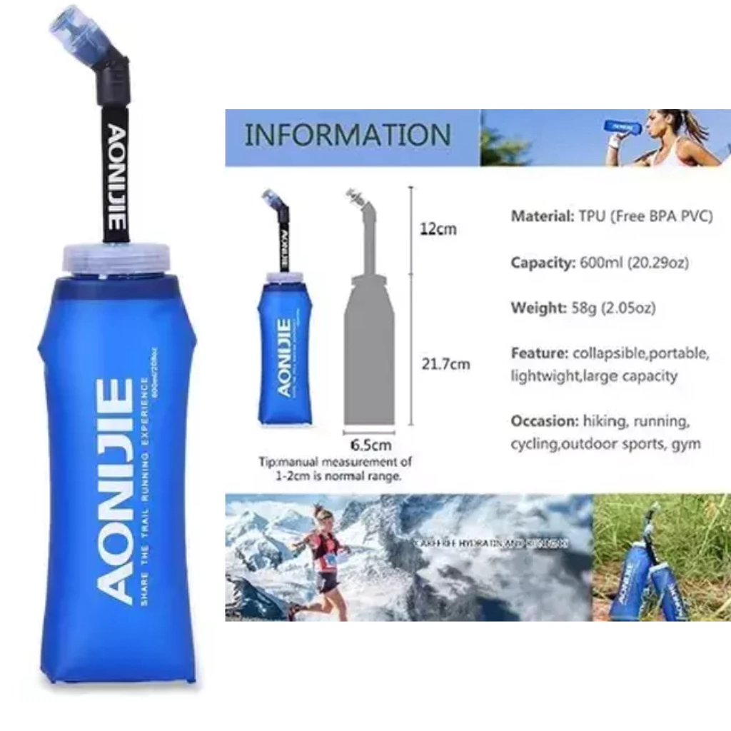 BOTELLA HIDRATACIÓN AONIJIE 600ML PLEGABLE CON TUBO